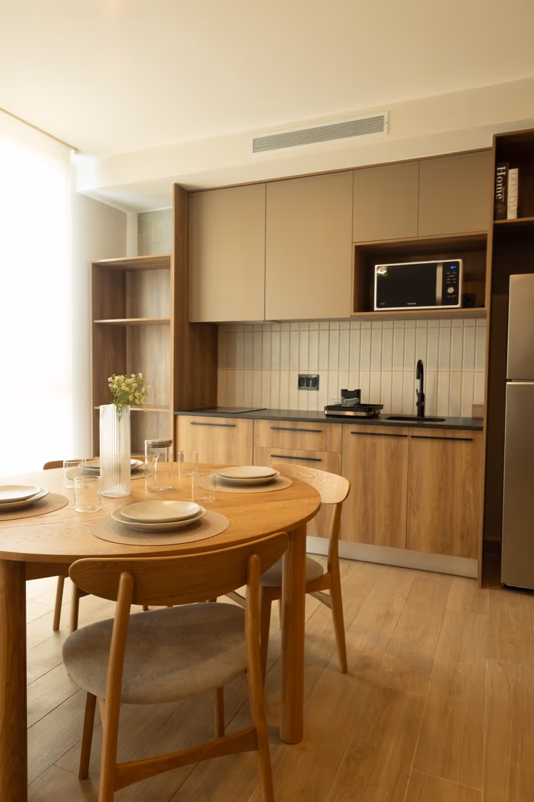 Margot combina el confort de un loft moderno con la calidez de un hotel premium. Su ubicación privilegiada y amenidades completas lo convierten en la opción ideal para visitantes de la Expo, ejecutivos y parejas que buscan un espacio cómodo, funcional y con estilo.